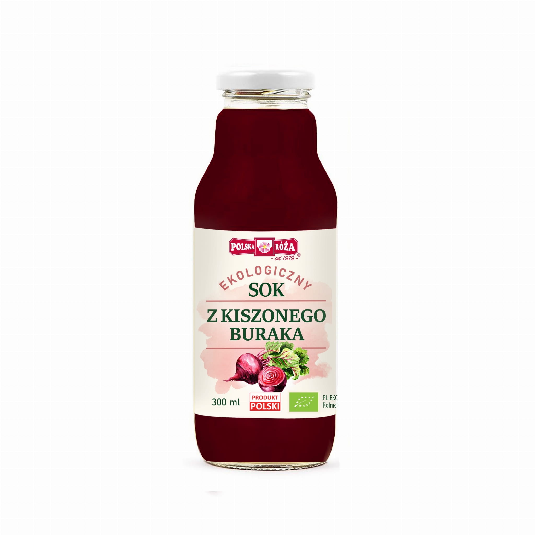 Ekologiczny produkt marki Polska Róża powstał ze starannie wyselekcjonowanych buraków pochodzących w 100% z rodzimych upraw bio. Do produkcji soku zostały wykorzystane wyłącznie polskie składniki: burak czerwony, sól, ekologiczny czosnek i woda. Nasza rodzinna tradycja kiszenia warzyw pozwoliła nam na stworzenie produktu bez konserwantów i innych chemicznych dodatków. Prosty skład idzie w parze z wyjątkowym smakiem, który, podobnie jak kolor, zależny jest od użytej partii warzywa i przypraw. Osad jest zjawiskiem naturalnym. Aby zapobiec produkcji plastiku, sok z kiszonych buraków przelaliśmy prosto z beczek do szklanej butelki o pojemności 300 ml.